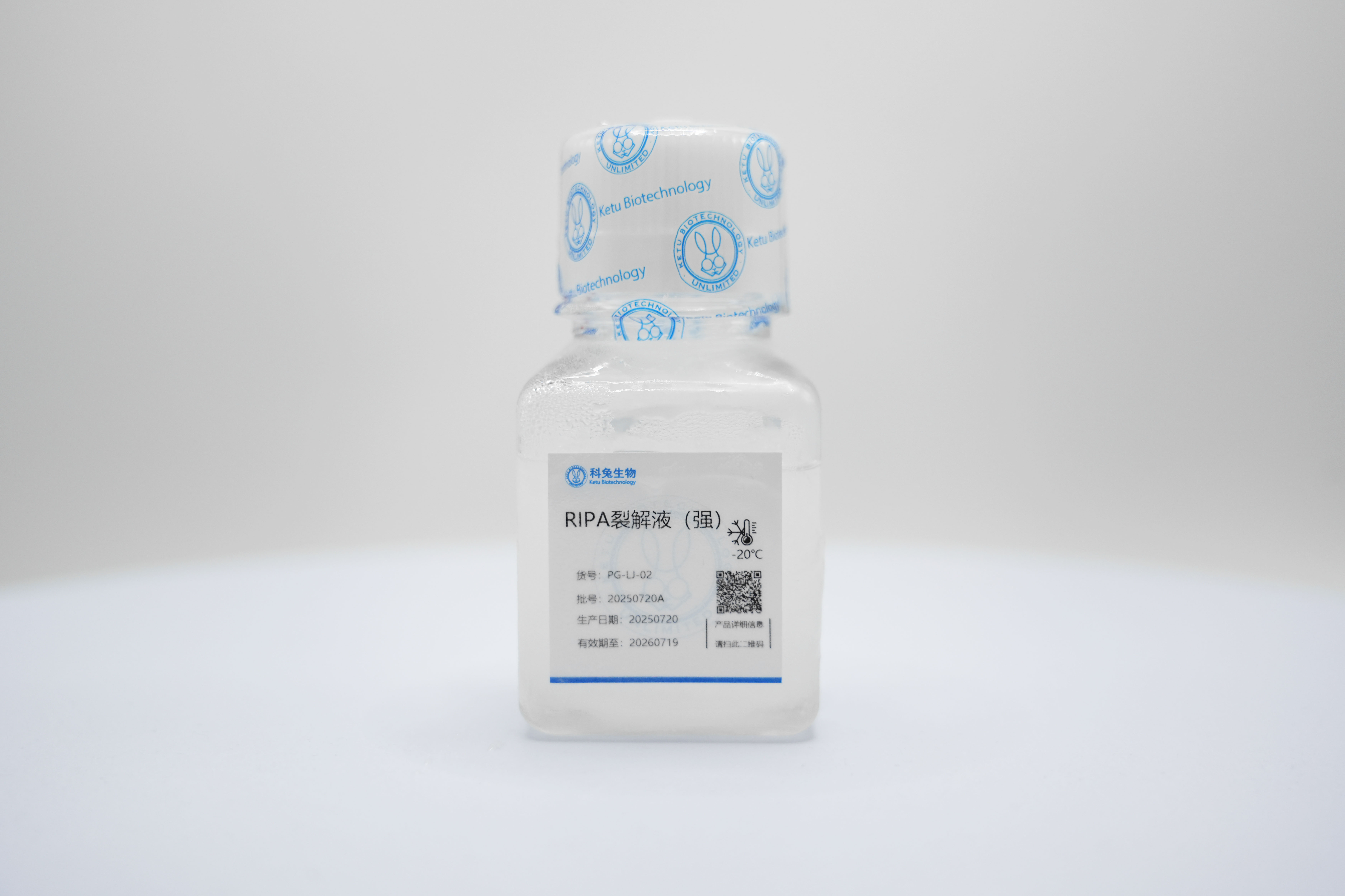 RIPA 裂解液(强)的主要成分为50mM Tris (pH 7.4),150mM NaCl,1% Triton X-100,1% sodium deoxycholate,0.1% SDS,以及 sodium orthovanadate,sodium fluoride,EDTA,leupeptin 等多种抑制剂,可以有效抑制蛋白降解。