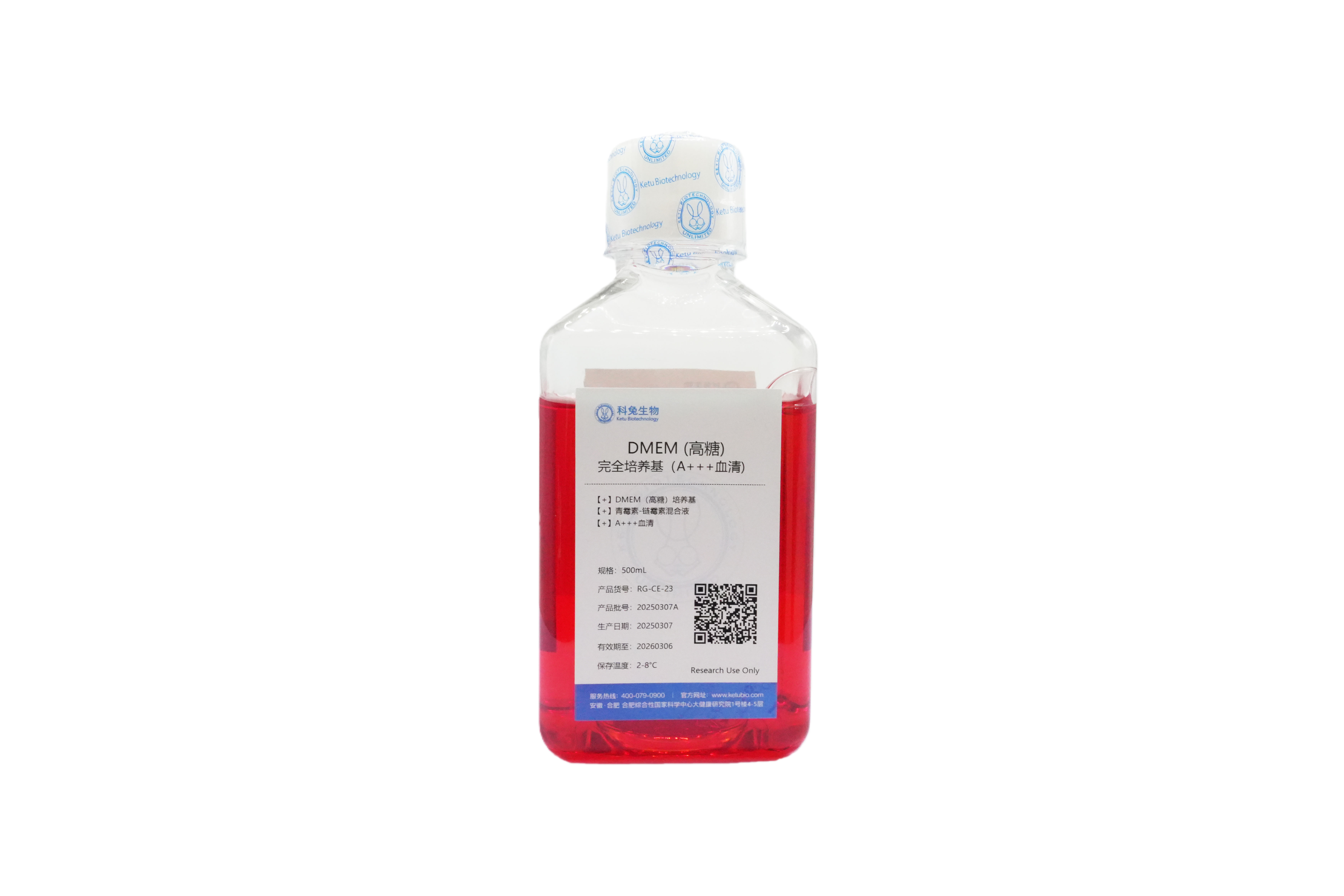 DMEM(高糖)完全培养基(A+++血清)是经过测试优化选定的配方,可以保证细胞良好的生 长状态,本产品含有 DMEM(高糖)培养基 89%、胎牛血清(进口 A+++)10%、青霉素-链霉素 混合液(100×)1%,无需额外再添加任何成分,可直接用于细胞的培养。